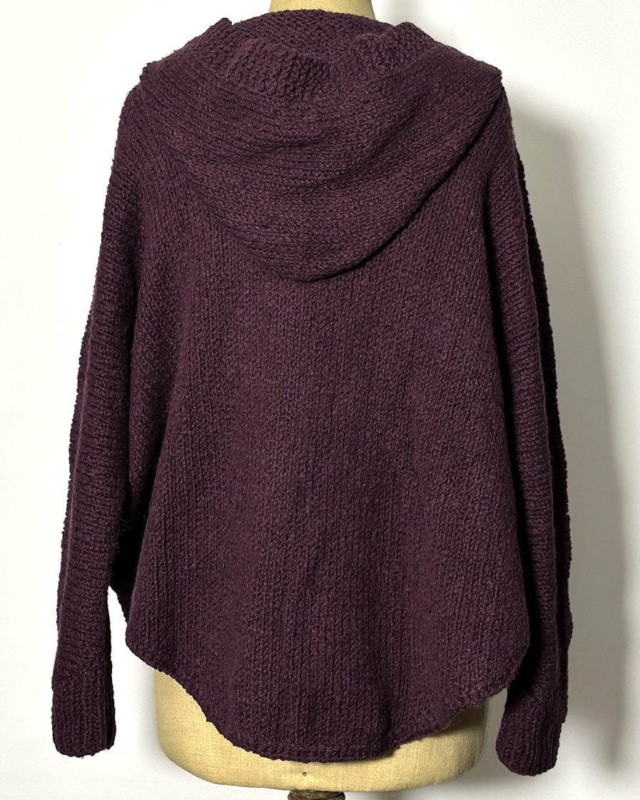 Sweater poncho con capucha en suave hilado de alpaca y algodón